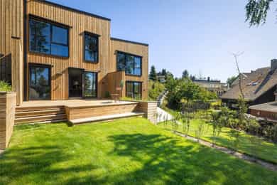 Fastpris: Oppgrad rekkehus m/4 sov. 3 bad. Stor sydvestvendt uteplass. Garasjepl. Lader. Sikte på ot. april