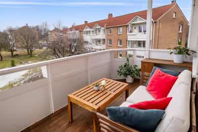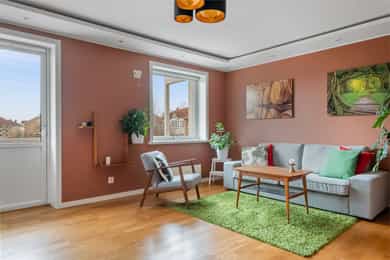 Innbydende og flott 3-r med smart planløsning og v.vendt balkong |Peis|Tilbaketrukket og grønn beliggenhet|Barnevennlig