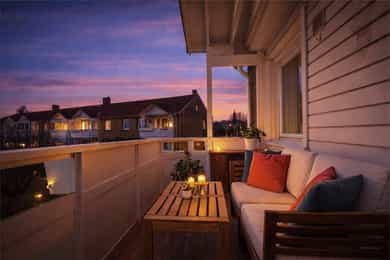 Tilfarere med terrassebord på balkong