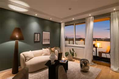 Lys og attraktiv 3-roms endeleilighet | VV, fyring og fiber inkl | Solrik balkong | Heis | Ingen dok. avgift | Nær marka