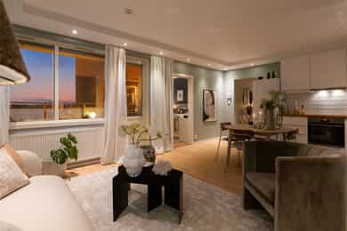 En usjenert og attraktiv 3-roms endeleilighet. Leiligheten har vestvendt balkong med lite innsyn og flott utsikt. Eiendommen har en sentral og praktisk beliggenhet, med dagligvarebutikk, T-bane og buss i umiddelbar nærhet. Borettslaget er veldrevet og har oppgradert bygningsmassen betydelig de siste årene. Blant annet med nye heiser, nyrenoverte balkonger og fasader. Badene ble pusset opp i 2007, radiatorene i 2009.