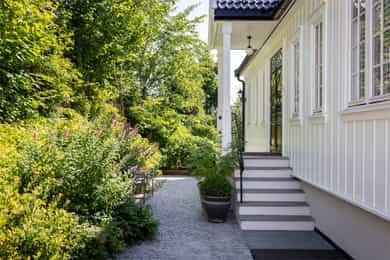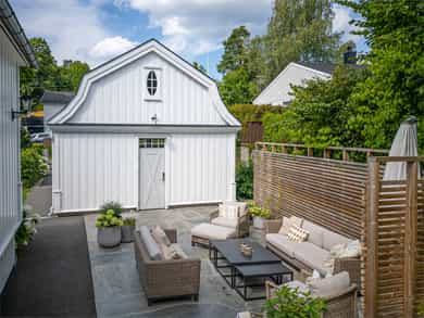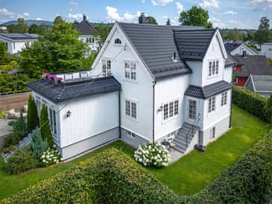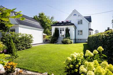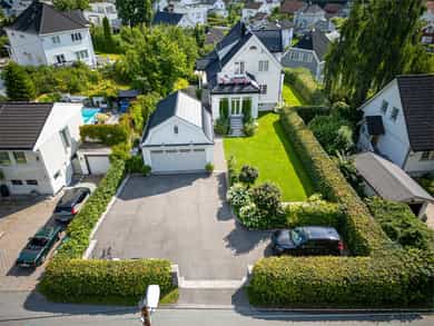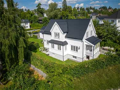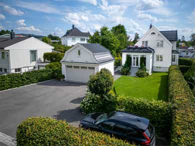 Boligen vil annonseres for salg med innvendige bilder i april - Kontakt megler ved spørsmål! Vakker og herskapelig villa på 338 kvm, beliggende på en særdeles pent opparbeidet og lettstelt tomt med solrike uteområder, utekjøkken og dobbelgarasje. Boligen er omfattende renovert og påkostet i 2018 med skreddersydde løsninger og arkitekttegnet planløsning. Oppussingen er utført med stor vekt på kvalitet, materialvalg og et helhetlig uttrykk som passer boligens opprinnelige arkitektur og vakre estetikk. - 5 soverom - 4 bad + toalett - Stort vaskerom - Kjøkken og grovkjøkken fra 2018 - Spesialbygde innredninger fra JH Interiør - Dobbelgarasje fra 2023 med elbil-lader - Takterrasse ut fra hovedsoverom - Solrike uteplasser og utekjøkken - Tilrettelagt for hybel* - Jar skolekrets