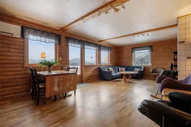 En stor og flott fritidseiendom oppført i 1992 med en nydelig plassering på Sandhornøya og med fantastisk utsikt. Boligen er løpende godt vedlikeholdt og holder i dag en god hytte standard. I tillegg får du en svær terrasse på hele 50 kvm, og et nyere uthus med god lagringsplass oppført i 2017. Det meste av innvendig oppgraderinger er også gjort i 2017 med blant annet nyere kjøkken og bad, samt nytt el anlegg. 2 solide stuer og 4 soverom. Hytta er nylig utvendig malt, samt lagt nytt utvendig tak i 2025. Det foreligger privat vannverk og septiktank og videre får du privat vei opp til boligen. Er du glad i tur og fiske får du meget flotte turområder og fantastiske fiskemuligheter til både sjø og vann i umiddelbar nærhet. Ellers kort vei til nærbutikk i Nygårdsjøen ca.20 min kjøring.