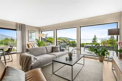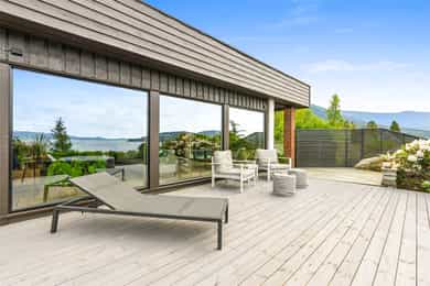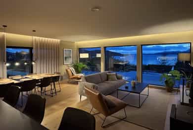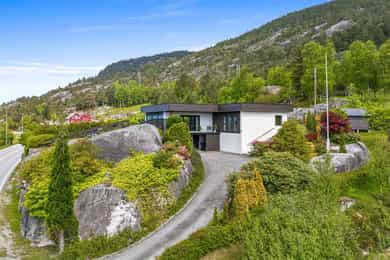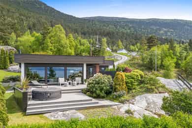 Arkitekttegnet enebolig m/idyllisk, solrik tomt (1 321m²) & nydelig sjøutsikt! Vesentlig oppgradert & påkostet. Garasje