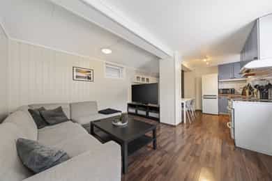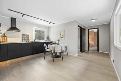 Enebolig svært påkostet i 2025 med bla kjøkken, bad, vaskerom m.m. 3 sov + kjeller. Koselig hage. Garasje.