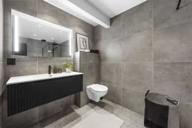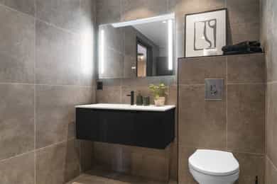 • Svært delikat baderom med varmekabler og romslig dusj