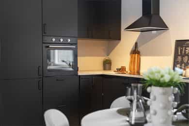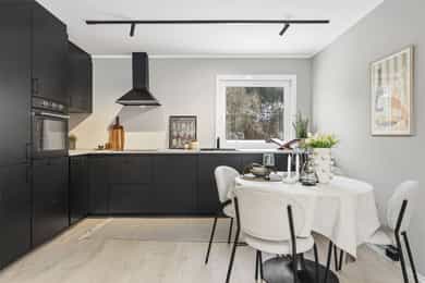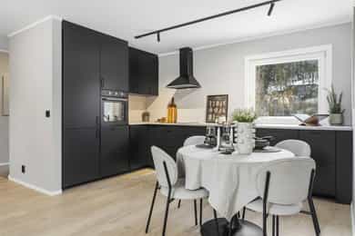 • Pent moderne kjøkken med plass til spisegruppe