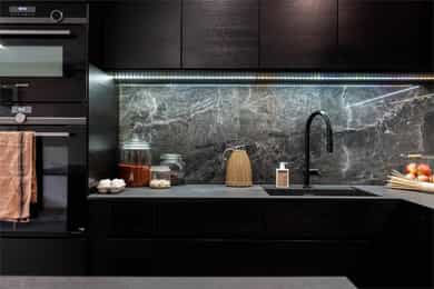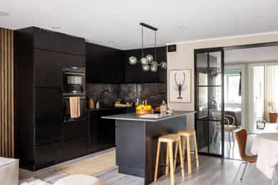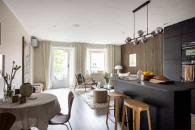 Entré, tre soverom, baderom og stue/kjøkken. Takhøyde i stue og kjøkken er på 2,4 meter. Entré: Velkommen inn! Det første som møter deg i leiligheten er en lys og innbydende entré med 60x60 fliser med marmormotiv. , sittebenk, stort garderobeskap og docking stasjon for all smart belysning. Inngangspartiet har fantastiske detaljer som spiler i Eik og spesialbestilt garderobeskap fra ¨Din garderobe¨. Stue/kjøkken: Lys og hyggelig stue med god plass til en større sittegruppe, sofabord og spisebord. Perfekt for deg sosiale settinger! Stuen preges av elegante detaljer i matt sort, spilevegg, gode fargevalg og integrert høyttalere fra Bose med Sonos anlegg som er innfelt i vegg. Store vindusflater som gir rikelig med luft og lys i tillegg til utgang til sydøstvendt balkong på ca. 5 kvm med gode solforhold. Balkongen er vendt mot rolig miljøgate. Kjøkken med åpen løsning mot stuen. Kvik kjøkkeninnredning fra 2021 med under-/overskap og glatte fronter. Benkeplater av laminat med planlimt kum i kompositt e.l og ett-greps blandebatteri. Integrerte hvitvarer som micro, komfyr, induksjonstopp med integrert kullfilter fra Nicola Tesla, oppvaskmaskin og kjøl/frys. Det er installert automatisk lekkasjestopper med magnetventil og føler i kjøkkenbenk under kum og komfyrvakt over kokesone. Soverom: Hovedsoverommet er av god størrelse og vender mot rolig bakgård. Videre har soverommet god plass til dobbeltseng og spesialbestilt garderobeskap fra ¨Din garderobe¨. Rommet er malt i Evening green som gir en god romfølelse. Soverom 2 fungerer også perfekt som gjesterom, barnerom eller kontor. Soverommet er malt i antikkgrå og har god plass til dobbeltseng. I likhet med de andre soverommene vender dette også mot rolig bakgård. Soverom 3 fungerer perfekt som gjesterom, barnerom eller kontor. Soverommet er malt i blushing peach og har god plass til seng og garderobeskap. I likhet med de andre soverommene vender dette også mot rolig bakgård. Baderom: Flislagt baderom fra 2022 med varme i gulvet og downlights i himling. Innredet med vegghengt klosett, servant nedfelt i innredning og dusjhjørne med svingbare glassdører. Opplegg for vaskemaskin. Mekanisk avtrekk.