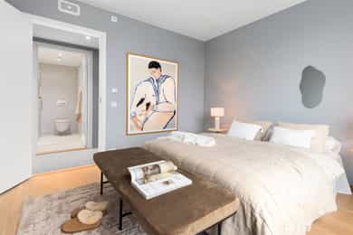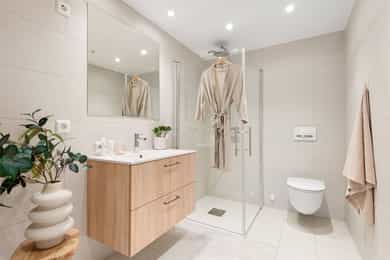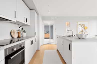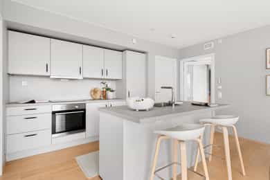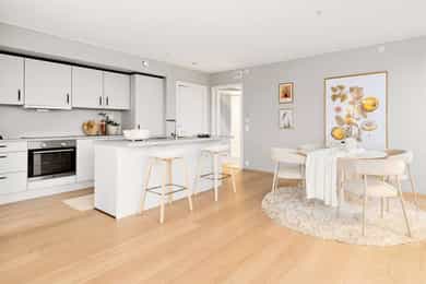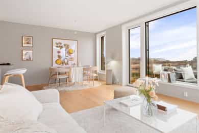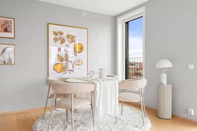 Herlig 3-roms toppleilighet i populære Magasinparken - her bor du høyt og tilbaketrukket i 6. etasje med heis og en romslig balkong med hyggelig utsyn. Leiligheten er fra 2022 og holder en moderne standard med vannbåren gulvvarme, stilrene overflater og store vindusflater som gir flott lysinnslipp. Planløsningen inkluderer to soverom, ett bad og en åpen stue/kjøkkenløsning. Beliggenheten gir gangavstand til både Ski sentrum og togstasjonen - og med Follobanen er du i Oslo på 11 minutter. Magasinparken er et urbant boligområde med flotte fellesarealer, og passer for både unge og eldre. Høydepunkter: Toppleilighet fra 2022 6. etasje med heis og god utsikt Garasjeplass medfølger Balkong på 12 kvm Vannbåren gulvvarme To boder Gangavstand til "alt"