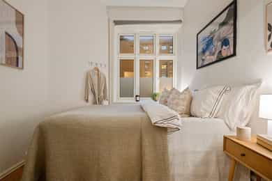Klassisk, lys og arealeffektiv 2-roms med etterspurt beliggenhet på Majorstuen rett ved nye Middelthunet. En perfekt beliggenhet for deg som ønsker å bo rolig, men samtidig sentralt og med nærhet til alt Oslo vest har å tilby. Boligen er gjennomgående og har en effektiv planløsning med god romfølelse og takhøyde på ca. 3 meter. Åpen stue- og kjøkkenløsning gir plass til både sofagruppe og spisebord. Stilrent kjøkken fra HTH med både oppvaskmaskin og vaskemaskin. Romslig soverom vender mot stille bakgård og har god plass til både seng og garderobeløsning. Høydepunkter: -God takhøyde på ca. 3 m -Effektiv og gjennomgående planløsning -Flott beliggenhet -Vinduer fra 2022 -Klassiske detaljer som stukkatur og rosett -Soverom vendt mot bakgård -Lave omk