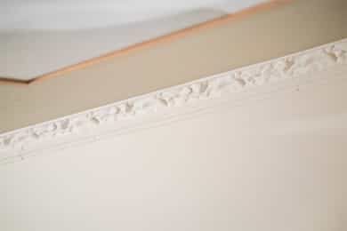Stue: Parkett på gulv og malt overflate på vegger. Malt overflate i himling med rosett og stukkatur. Panelovn. Kjøkken: Parkett på gulv og malt overflate på vegger. Malt overflate i himling. Innredning med kullfiltervifte over stekesonen. Det er integrert vaskemaskin, kjøleskap, oppvaskmaskin, platetopp og stekovn. Bad: Flis på gulv og flis på vegger. Malt overflate i himling. Gulvvarme. Utstyrt med mekanisk avtrekk, servantskap, veggmontert wc og dusjkabinett. Soverom: Parkett på gulv og malt overflate på vegger. Malt overflate i himling. Panelovn. Entre: Flis på gulv og malt overflate på vegger. Malt overflate i himling. Garderobeskap.