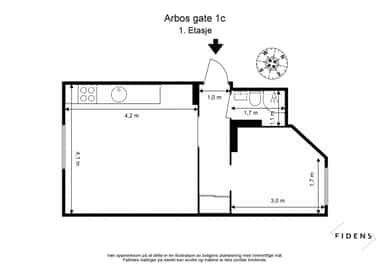 BRA-i: 35 kvm. Entre, bad, stue/kjøkken, soverom.