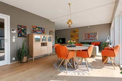Fantastisk toppleilighet med utsikt over Larviksfjorden og mot Balders Have. Leiligheten har gode solforhold, med 3 flotte terrasser der du kan flytte deg etter solen. Leiligheten inngår i Grand Living hvor du har tilgang til å bestille tjenester til gunstige priser via Grand Hotel Larvik. God standard, super beliggenhet. Leiligheten har en fin beliggenhet i Grandkvartalet, med umiddelbar nærhet til alle sentrumsfunksjoner. Fra leiligheten er det kort avstand til fjorden, badestrender og flotte turområder. I Grandkvartalet er det div. butikker, frisør, cafe og spisesteder. Her kan du leve livet! Ingen over, ingen ved siden.