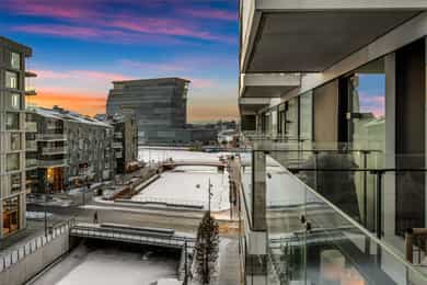 Velkommen til Rostockgata 54 presentert av Marthe Grønnslett v. Nordvik Bjørvika. Her har vi gleden av å presentere en særdeles tiltalende 3-roms kanalleilighet med fantastisk utsikt mot Munch, fjorden og Middelalderparken. Leiligheten har en meget god intern beliggenhet med høy standard, vestvendt balkong og en gjennomgående planløsning. Høydepunkter; - Lyst og gode utsiktsforhold i 5. etg - Store vindusflater med mye lysinnslipp - Solrik vestvendt balkong - Bygg fra 2020 - To soverom, hvorav hovedsoverom har inngang til walk-in - Romslig og delikat flislagt bad - Tilgang til felles takterrasse med flott utsikt - Medfølgende bod på ca. 6 kvm - Kort vei til Norges råeste Meny, Vinmonopol og flere treningssentre - Kort gange til Oslo S med Flytoget og alt av kollektivtilbud