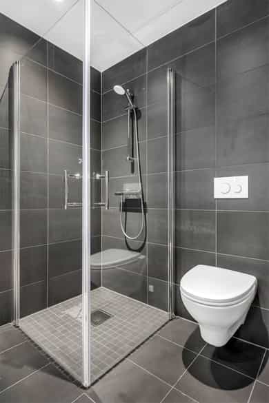 Boligbygg med flere boenheter - Byggeår: 2020 UTVENDIG Malte karmer av tre innvendig og aluminiums beslått utvendig med 3 lags isolerglass. Vinduer er i god stand og er produsert i 2019. Isolert inngangsdør fra Vännäs Dörr av finer, med lyd og brannklasse. Malt balkong dør med 3 lags isolerglass. Balkong døren er aluminiums beslått utvendig. Begge dørene er produsert i 2019. Vestvendt balkong på 7m2 av stålkonstruksjon og betongdekke. Tremmegulv av impregnert terrassebord. Rekkverk av stål og glass. INNVENDIG Gulv har overflater av 1 stavs parkett. Vegger har overflater av malte plater og malt mur. Himlinger/tak har overflater av malt lettbetong elementer. Overflater er i god stand og det er varme i alle gulv unntatt bod/teknisk rom og bod/skap, opplyser eier. Lettbetong elementer gulv som skille ned mot underliggende leilighet/areal. Det er skjevheter som er målbare, men som ikke er til sjenanse for bruken av leiligheten. Gulvet er ikke åpnet, derfor kan våre oppdagelser vedrørende oppbygging være feil. Det er målt høydeforskjeller i stue/kjøkken og i ett soverom. Det er ikke oppdaget noen uvanlige høydeforskjeller i henhold til dagens krav. Målinger av gulv er kun stikkprøver i 2 rom, målt rundt vegg og midt på gulvet. Malte glatte innerdører med ramme rundt. Dørene går fint og har normal bruksslitasje. TEKNISKE INSTALLASJONER Innvendige vannledninger er av plast (rør i rør). Det er besiktiget i rørskap montert i tak på badet. Avløpsrør i plast, avløpsrør er kun inspisert inne i leiligheten. Ventilasjon til balansert ventilasjons aggregat montert i teknisk rom/bod. Det er montert sprinkler system i leiligheten. Varmtvann (forbruksvann) leveres via Fyrsentralen/fellesanlegg. Varmtvannstanken er en del av fellesarealer og vedlikeholdes i regi av sameie. Konstruksjonen er derfor kun beskrevet, ikke tilstandsvurdert. Elektrisk anlegg med automatsikringer. Det er i forbindelse med salget utarbeidet en tilstandsrapport fra bygningssakkyndig. Tilstandsrapporten er en teknisk gjennomgang av boligen med oppdagede avvik. Vedlagt salgsoppgaven følger tilstandsrapporten og selgers egenerklæring. Disse må leses nøye av interessenter før bud inngis. Opplysninger gitt i tilstandsrapporten anses å være kjent for kjøper, og det kan derfor ikke reklameres på forhold som fremkommer av tilstandsrapporten. Forhold som har fått TG2 og TG3 må gjennomgås spesielt nøye, da disse indikerer avvik fra normal slitasje og/eller høy alder, med mulig behov for utbedring. Bygningsdeler som har fått TGIU er ikke undersøkt av takstmann. Ingen av punktene i tilstandsrapporten har fått TG2 eller TG3. Varmtvannstank har fått TGIU (ikke undersøkt).