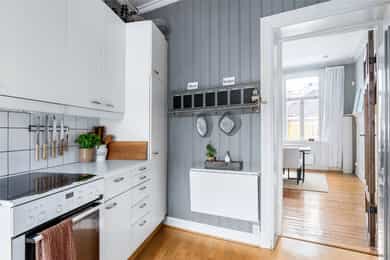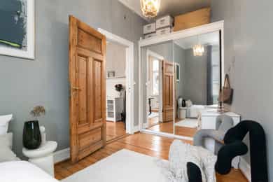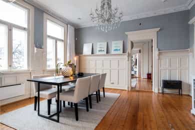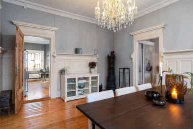 • Klassiske detaljer som stukkaturer, rosetter, doble fløydører og takhøyde på opptil 3,25 m
