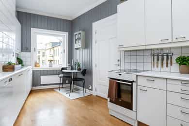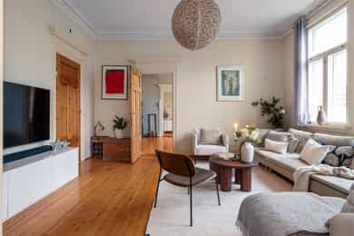 Lys og klassisk 4-roms hjørneleilighet i 3. etg på 124 m² | Stukkaturer og rosett | 2 ildsteder | 3,25m takhøyde