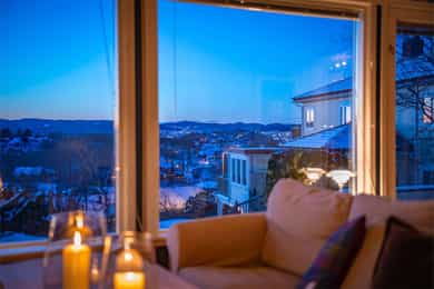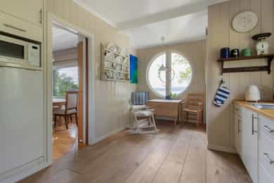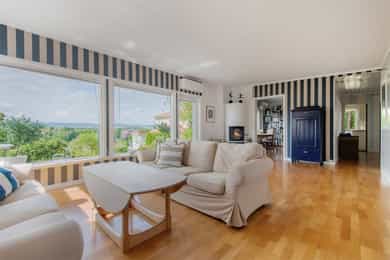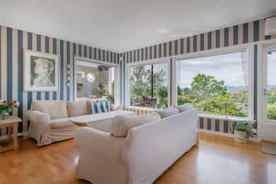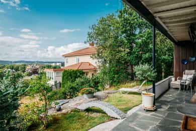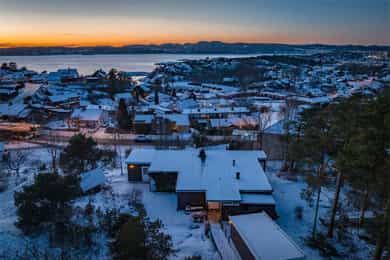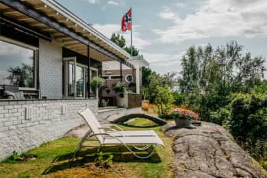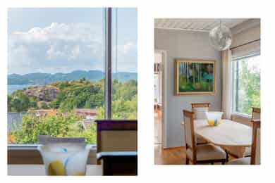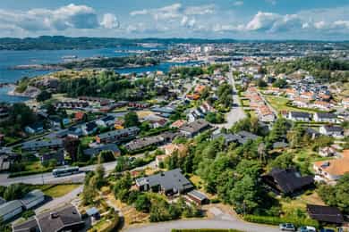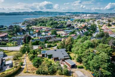 Velkommen til et unikt funkishus med fantastisk beliggenhet! Her får du sol fra morgen til kveld og en vidstrakt utsikt over sjø og byen som virkelig må oppleves. Boligen har et særegent preg og byr på flotte uteplasser som inviterer til både rolige stunder og hyggelige sammenkomster. Tomten gir spennende utviklingsmuligheter, enten du ønsker å modernisere eksisterende hus eller bygge på en ekstra etasje. Den store skrånende tomten med utsikt egner seg spesielt godt for eiendomsutvikling. Garasje følger med, og området er svært barnevennlig med trygge omgivelser. Kort vei til sjøen og det er godt med skoler og barnehager i nærområdet. Her får du en bolig som passer like godt som fast bosted som fritidsbolig, da det ikke er boplikt i området. * Utvikling må avklares på kjøpers ansvar