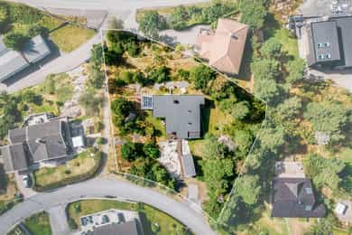 Arkitekttegnet funkishus på fantastisk tomt med sol fra morgen til kveld og vidstrakt utsikt - Mulig utvikling* -Garasje