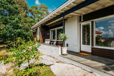 Arkitekttegnet enebolig oppført i 1962. - Taket er tekket med sveiset asfaltbelegg. Det er lagt ny taktekking i 2017. Ny papp er lagt på det gamle pappbelegget. - Boligen har takrenner og nedløp i aluminium eller sink. - Boligen er oppfør i tradisjonelle bindingsverkskonstruksjoner utvendig kledd med stående trekledning. - Boligen har pulttak av plassbygde trekonstruksjoner. - Boligen har malte trevinduer med to-lags glass. - Til boligen er det en malt to-fløyet inngangsdør. Døren er fra 2007. - Terrassedør med ett lags glassfelt. Døren er fra byggeår - Til boligen er det en 19 m2 overbygget uteplass og en 19 m2 terrasse langs husveggen. - I fbm. inngangsparti er det en 12 m2 platting. - Boligens etasjeskiller mot krypkjeller er av betong. - Det er krypkjeller under det meste av boligen. Krypkjellere har tilkomst fra utvendig luke. - I boligen er det en 200L VV bereder. - Boligen har skjult og åpent elektrisk anlegg. Sikringsskap med automatsikringer. Det er i forbindelse med salget utarbeidet en tilstandsrapport fra bygningssakkyndig. Tilstandsrapporten er en teknisk gjennomgang av boligen med oppdagede avvik. Forhold som har fått TG2 og TG3 må gjennomgås spesielt nøye, da disse indikerer avvik fra normal slitasje og/eller høy alder, med mulig behov for utbedring. Bygningsdeler som har fått TGIU er ikke undersøkt av takstmann. Bygningsdeler som har fått TG2: - Taktekking: Taktekkingen er noe ufagmessig utført ned mot takrenne i takutstikk. Taktekkingen har noe bulinger. Dette som en konsekvens av at ny tekking ligger på den gamle. - Nedløp og beslag: Mer enn halvparten av forventet brukstid er passert på renner/nedløp/beslag. Det er rust på rennekroker i stål. - Veggkonstruksjon: Det er ingen eller liten lufting i nedre kant av kledning mot grunnmur. - Takkonstruksjon/Loft: Eier opplyser at det på enkelte plasser kan være begrenset eller manglende isolasjon i konstruksjonen. Det er noe fuktskolder i takbord i bod. Usikkert av hvilken årsak. Konstruksjonen har noe mindre skjevheter. Dette antagelig som en naturlig konsekvens av alder og byggetidens byggemetoder. Det bemerkes at takkonstruksjonen antagelig er dimensjonert og isolert etter de krav som gjalt på byggetidspunktet. Dagens krav til dimensjonering og isolasjon er vesentlig strengere. Det er ikke kjent om det er montert dampsperre på varm side i konstruksjonen. Det er noe svertesopp på undersiden av takutstikk. Det er skade og råte på taksperr/takutstikk ved dør til vaskerom. Det kan også forekomme mindre råte på enkelte andre taksperr, uten at det ble oppdaget på befaringen. - Vinduer: Vinduene er av eldre dato og har oppbrukt mye av sin forventede levetid. Det kan ikke utelukkes at det kan forekomme vinduer med begynnende råte. Mange av vinduene har alder og værslitasje. - Boddør: Det er begynnende råte nederst på døren. Noe alder og værslitasje. - Terrassedør: Døren er fra byggeår og har oppbrukt sin levetid. Døren har kun et lags glass. Det er også en innvendig dør, så det blir to lags. - Utvendige trapper: Åpninger i rekkverk er ikke i henhold til krav i dagens forskrifter. - Utvendig bod: Det er ikke lufteventiler i boden. Det er noe fuktskjolder i tak. - Etasjeskille/gulv mot grunn: Etasjeskiller kan være utsatt for fukt fra undersiden. Dette fordi det er høy luftfuktighet i krypkjeller. Det er ikke foretatt fuktmålinger i konstruksjonen eller under parkett i boligen. - Radon: Det er ikke foretatt radonmålinger, og bygget er heller ikke utført med radonsperre. - Krypkjeller: Det er stedvis påvist fuktnivå som tilsier at konstruksjonen kan ha fuktskader. Det er høy luftfuktighet og tilsig av fukt i krypkjeller. Tilsig av fukt kommer fra omkringliggende terreng. Det er ikke lufteventiler i krypkjeller. - Overflater vegger og himling bad: Våtromsplater er ført ned til fliser på gulv. Dette er ikke en anbefalt løsning fra produsent av platene. Det anbefales å legge en oppkalt flis på vegg som platene avsluttes mot med en alu. skinne i mellom plater og flis. - Overflater baderomsgulv: Hovedgulv har noe mindre fall til sluk en dagens krav som er 1:100. Det er også noe mindre lokalt fall til sluk en dagens krav. - Sluk, membran og tettesjikt: Det foreligger ikke dokumentasjon på membran. - Ventilasjon bad: Våtrommet mangler tilluftsventilering, f.eks. spalte/ventil ved dør. - Overflater vegger og himling (bad ved soverom) Det er sprekk i flis på vegg ved bryter til varmakabler. - Overflater gulv (bad ved soverom): Det er påvist at høydeforskjell fra topp slukrist til gulv/synlig topp membran ved dørterskel er mindre enn 25 mm. Det er ikke oppkalt ved dørterskel slik at det er mindre høydeforskjell fra membran ved dørterskel og til sluk. Hovedgulv har noe mindre fall til sluk en dagens krav som er 1:100. Det er noe bom i flis ved dør. - Sluk, membran og tettesjikt (bad ved soverom): Mer enn halvparten av forventet brukstid er passert på membranløsningen. Det foreligger ikke dokumentasjon på membran. Eier opplyser at det ikke kan fremskaffes. Sluk er fra byggeår og har oppbrukt sin forventede levetid. - Ventilasjon (bad ved soverom): Våtrommet mangler tilluftsventilering, f.eks. spalte/ventil ved dør. - Vannledninger: Mer enn halvparten av forventet brukstid er passert på innvendige vannledninger. Vannrør fra byggeår har oppbrukt mye av sin forventede levetid. Nyere vannrør har god restlevetid. - Avløpsrør: Mer enn halvparten av forventet brukstid er passert på innvendige avløpsledninger. Nyere avløpsrør har god restlevetid. - Ventilasjon: Det er påvist mangelfull ventilasjon på ett eller flere rom i boligen. - Varmtvannstank: Det er ikke påvist tilfredsstillende el-tilkobling av varmtvannstank iht. gjeldende forskrift. Det er påvist at varmtvannstank er over 20 år Det er en skade på VV bereder. - Elektrisk anlegg: Det anbefales på generelt grunnlag å få eldre elektriske anlegg og installasjoner sjekket av fagfolk. - Fuktsikrin