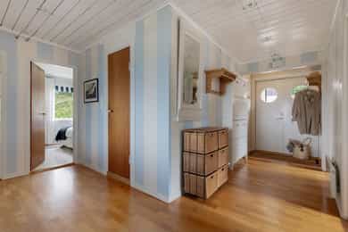 Generelle bestemmelser Alle innvendige og utvendige arealangivelser, samt beskrivelser av bygningen er hentet fra vedlagte tilstandsrapport/boligsalgsrapport. Salgsoppgaven er basert på de opplysningene selger har gitt til megler, den bygningssakkyndiges tilstandsrapport, samt opplysninger innhentet fra kommunen, Kartverket og andre tilgjengelige kilder. Det er viktig at kjøper setter seg grundig inn i alle salgsdokumentene, herunder salgsoppgave, tilstandsrapport og selgers egenerklæring. Kjøper anses kjent med forhold som er tydelig beskrevet i salgsdokumentene, og slike forhold kan ikke påberopes som mangler. Dette gjelder uavhengig av om kjøper har lest dokumentene. Det er avvik fra dagens rombruk/rombenevnelser sammenlignet med det som er byggemeldt/godkjent. Bod er bygget om til vaskerom og garderobe og wc i gang er bygget om til bad. Rommene er ikke bruksendret. Utestue/pergola mangler ferdigattest eller bruksstillatelse. Alle interessenter oppfordres til å undersøke eiendommen nøye, gjerne sammen med fagkyndig før bud inngis. Kjøper som velger å kjøpe usett kan ikke gjøre gjeldende som mangel noe han burde blitt kjent med ved undersøkelsen. Dersom det er behov for avklaringer, anbefaler vi at interessenter rådfører seg med eiendomsmegler eller egne rådgivere før det legges inn bud. En bolig som har blitt brukt i en viss tid, har vanligvis blitt utsatt for slitasje og skader kan ha oppstått. Slik bruksslitasje må kjøper regne med, og det kan avdekkes enkelte forhold etter overtakelse som nødvendiggjør utbedringer. Normal slitasje og skader som nødvendiggjør utbedring, er innenfor hva kjøper må forvente og vil ikke utgjøre en mangel. Kjøper og selgers rettigheter og plikter reguleres av avtalen mellom partene, samt informasjonen som har vært tilgjengelig for kjøperen i forbindelse med handelen. Avtalen utfylles av avhendingsloven, og det gjelder ulike avtalevilkår avhengig av om kjøper er forbrukerkjøper eller ikke. Dette er nærmere beskrevet nedenfor. På grunn av ulike avtalevilkår kan selger vurdere bud fra en som ikke er forbruker, ulikt fra en forbrukers bud. Dersom kjøper ikke er forbruker, er selger sitt mulige mangelsansvar begrenset fordi eiendommen selges "som den er". Selger kan ikke ta «som den er» forbehold ovenfor en forbrukerkjøper. Selv et lavere bud fra en som ikke er forbruker kan foretrekkes fordi begrensningen i mulig mangelsansvar kan ha egenverdi for selger. Selger står fritt til å forkaste eller akseptere ethvert bud, og er for eksempel ikke forpliktet til å akseptere høyeste bud. Budgiver skal i budskjema avgi egenerklæring om budgiver er forbruker eller næringsdrivende/ person som hovedsakelig handler som ledd i næringsvirksomhet. Budgivere får informasjon dersom andre bud er inngitt av en som ikke er forbruker. Forbrukerkjøp - definisjon Med forbrukerkjøp menes kjøp av eiendom når kjøperen er en fysisk person som ikke hovedsakelig handler som ledd i næringsvirksomhet. Forbruker – avtalevilkår Eiendommen har en mangel dersom den ikke er i samsvar med kravene som følger av avtalen, eller det foreligger brudd på bestemmelsene i avhendingsloven §§ 3-2 til 3-8. Hvis eiendommen ikke er i samsvar med det kjøperen må kunne forvente ut ifra alder, type og synlig tilstand, kan det være grunnlag for mangelskrav. Det samme gjelder hvis det er holdt tilbake eller gitt uriktige opplysninger om eiendommen. Dette gjelder likevel bare dersom man kan gå ut ifra at det virket inn på avtalen at opplysningen ikke ble gitt eller at feil uriktige opplysninger ikke blir rettet i tide på en tydelig måte. Boligen kan ha en mangel etter avhendingsloven § 3-3 dersom det er avvik mellom opplyst og faktisk innvendig areal, forutsatt at avviket er på 2% eller mer og minimum 1 kvm. Ved beregning av et eventuelt prisavslag eller erstatning må kjøper selv dekke tap/kostnader opptil et beløp på kr 10 000 (egenandel). Ikke-forbruker (næringsdrivende) – definisjon Hvis kjøper er en juridisk person, eller en fysisk person som hovedsakelig handler som ledd i næringsvirksomhet, vil kjøpet ikke anses som et forbrukerkjøp. Ikke-forbruker – avtalevilkår Eiendommen har en mangel dersom den ikke er i samsvar med kravene som følger av avtalen. Eiendommen selges «som den er», og selgers ansvar utover det konkret avtalte er da begrenset etter avhendingsloven § 3-9, første ledd andre setning. Avhendingsloven § 3-3 andre ledd fravikes, og hvorvidt boligens arealsvikt utgjør en mangel vurderes etter avhendingsloven § 3-8. Informasjon om kjøpers undersøkelsesplikt, herunder oppfordringen om å undersøke eiendommen nøye, gjelder også for kjøpere som ikke anses som forbrukere.