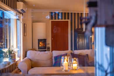 Boligen har følgende oppvarmingskilder: - I stuen montert en lukket peisovn. Peisovnen er fra 2007. - Luft-til-luft varmepumpe. Varmepumpen er fra 2017. - Elektriske panelovner. Dersom rom mangler fast installert oppvarmingskilde på visning, følger ikke dette med i handelen.