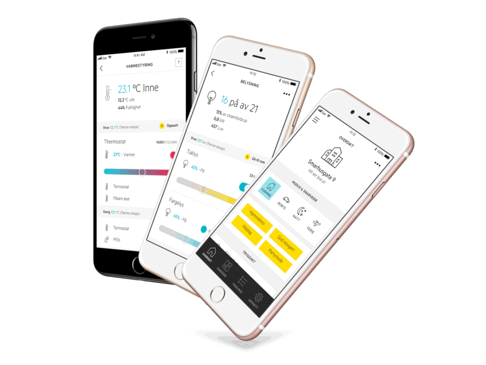 I dette huset har man full kontroll over eiendommen gjennom appen og dermed økt sikkerhet, lavere energiforbruk, bedre lys- og varmekontroll og ikke minst økt bokomfort.