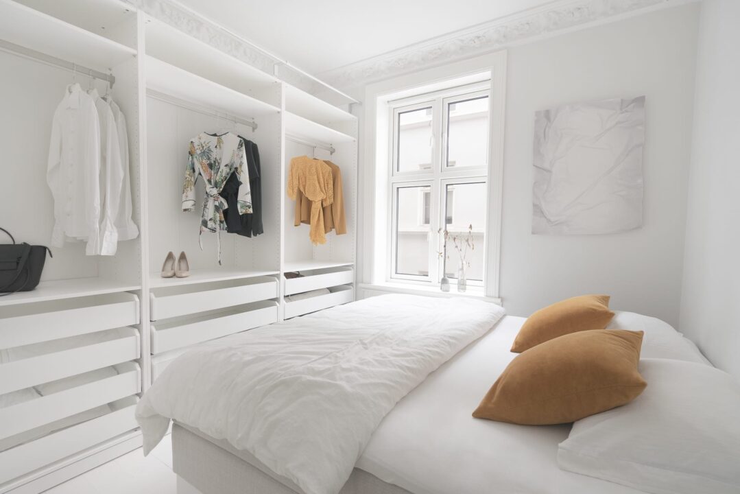 Hovedsoverommet har godt med skapplass i en praktisk løsning fra Ikea (Produkt: PAX garderobe).