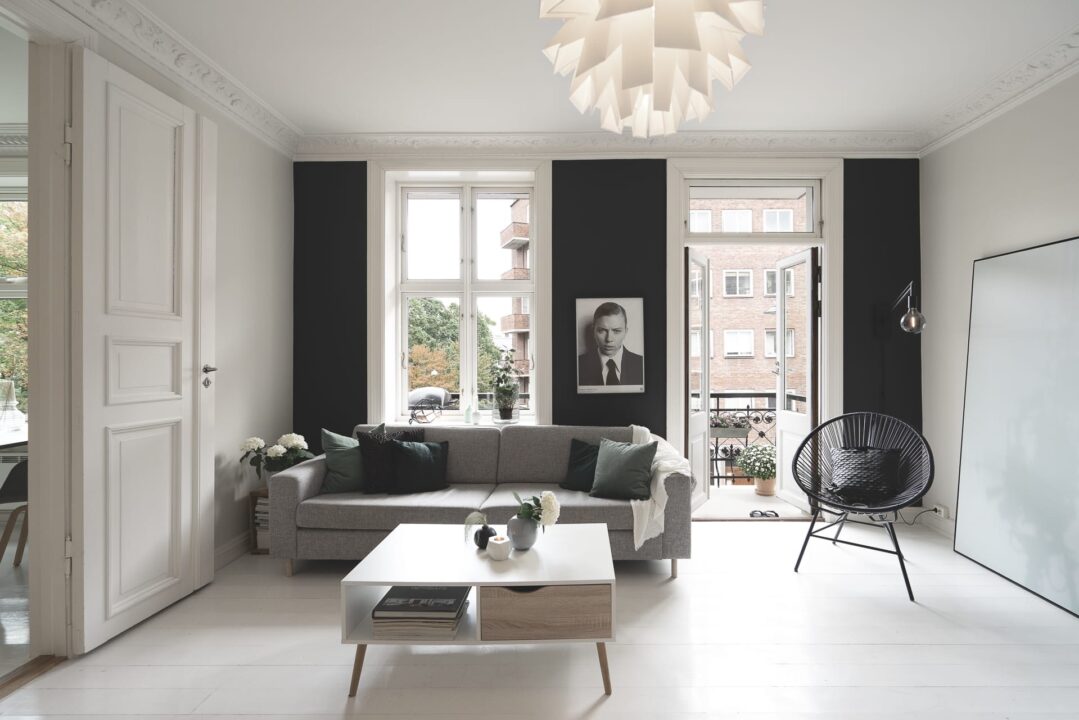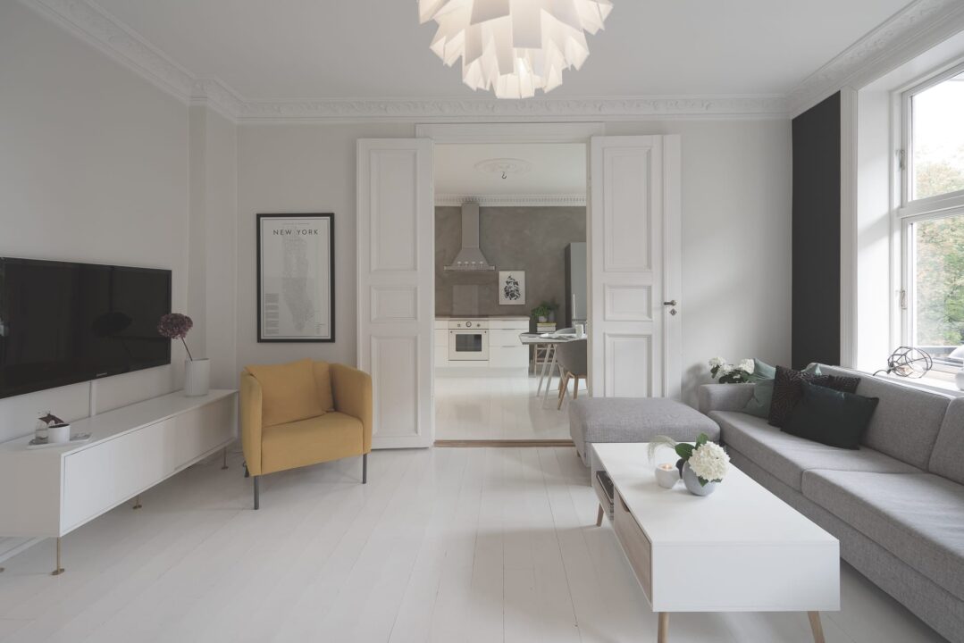 En "ren base" med hvite vegger og gulv har gitt dem kreativt spillerom når det kommer til valg av styling og interiør. Litt endring i fargetoner på interiøret, bytte av putetrekk og ommøblering har gitt leiligheten nytt liv når de har ønsket noe nytt.