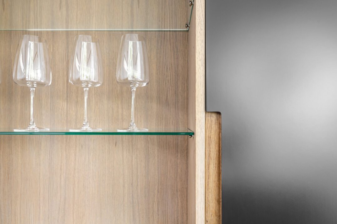 – Det kan bli litt flatt når alt er hvitt, sort eller glass. Jeg ønsket å tilføre mer taktilitet og eksklusivitet, så vi har brukt eik som et gjennomgående materiale for å bryte med dette, viser Katrine.