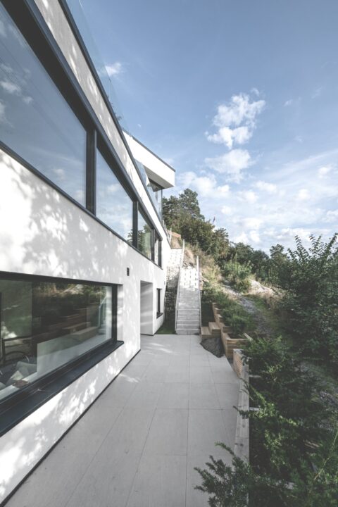 Mange hadde nok aldri tenkt på dette som en ypperlig tomt å bygge hus på. Fordi for seks år siden var dette en ubeboelig bratt skrent, med berg, busker og trær. Jobber man derimot til daglig som entreprenør innen konstruksjon, renovering og ombygging, som eieren av dette huset, ser man større muligheter enn de fleste. Men først måtte 8000 kubikkmeter sprenges bort.