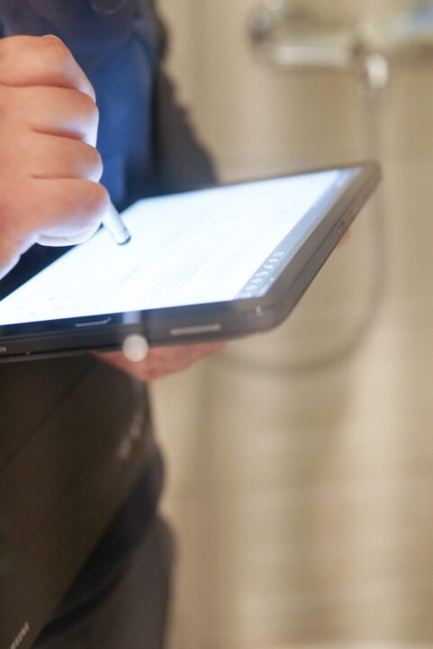 – Bare her på badet er det rundt 30 sjekkpunkter som må gjennomgås, så dette er nok rommet jeg bruker lengst tid på å undersøke. Membraner, nivåforskjeller, fallforhold på gulvet, avrenning fra innebygd sisterne, rørgjennomføringer og ventilasjon er bare noen av sjekkpunktene, sier Thomas fra Anticimex.
