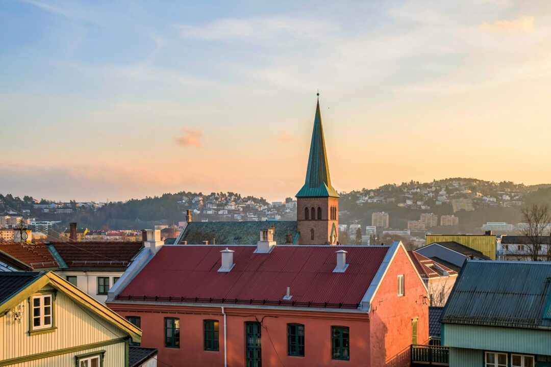 Fra loftsvinduet kan du se både fjord og åser, men også ut over Kampen og kirken