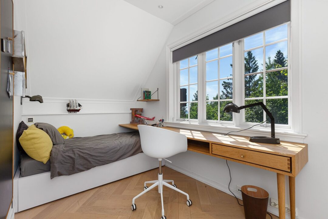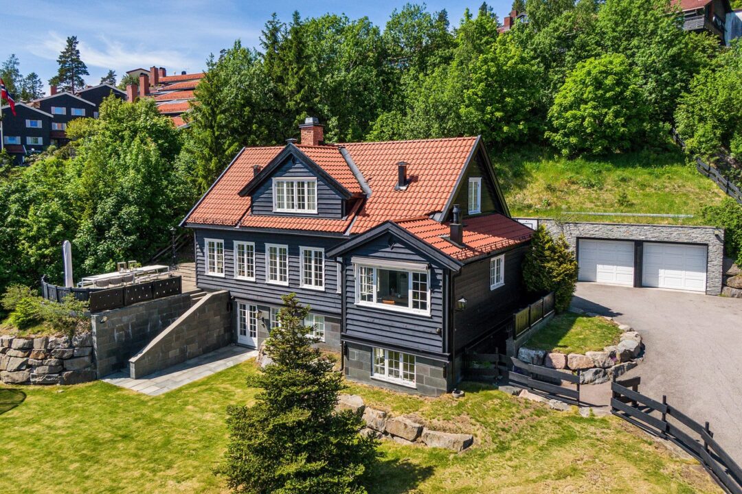 Med byen under seg og Nordmarka rett bak, ligger denne forholdsvis nybygde perlen, tegnet av arkitekt Jon H. Støre, i en fredelig avstikker fra Dr. Holms vei. Her møtes det beste av norsk, klassisk arkitektur og moderne dansk design i full harmoni.