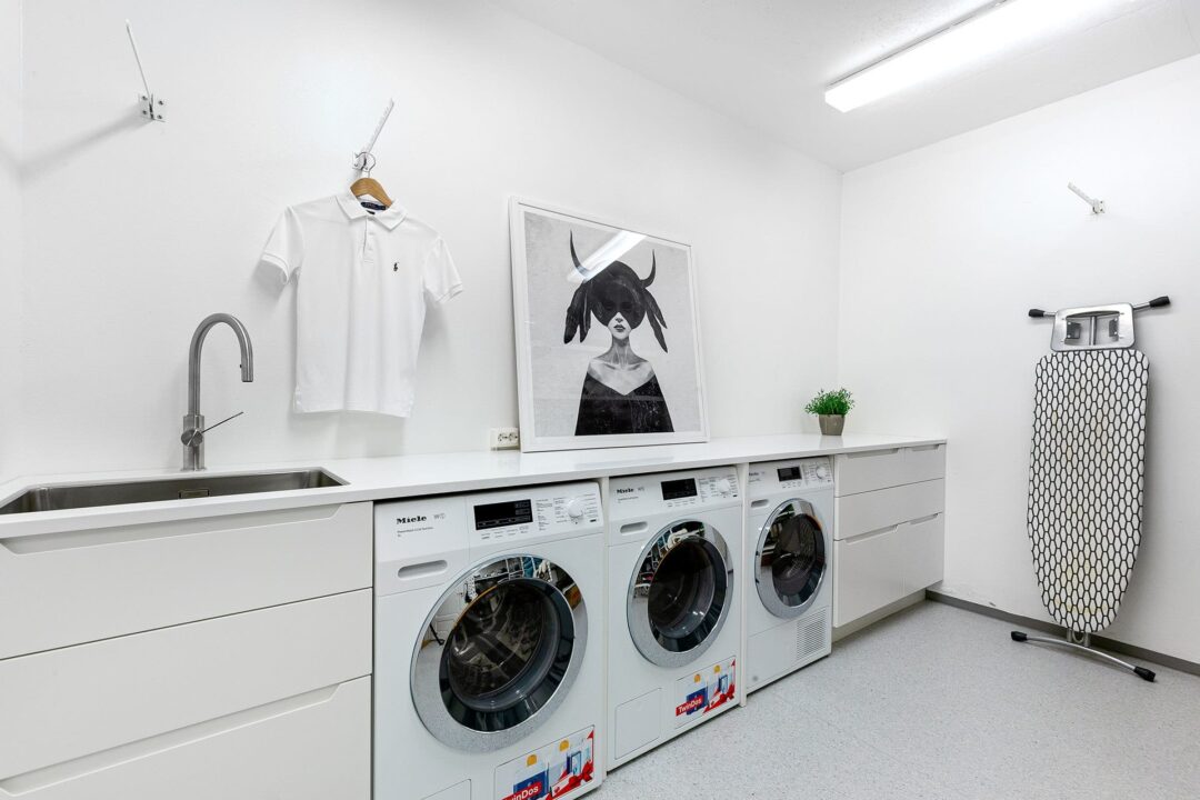Luksus kommer i mange varianter. Denne boligen rommer de fleste: Også den som ligger i gjennomtenkte, praktiske og tilgjengelige løsninger. Én ting er at Nordmarka ligger rett utenfor døra med sine muligheter for ski, sykkel, padling, løping og fotturer (det er anslagsvis 50 meter til skiløypene!). Det som gjør det enda bedre, er at det er lagt til rette for å benytte seg av disse mulighetene for trening og rekreasjon mest mulig effektivt og behagelig. Her spiller for eksempel et helt nytt vaskerom, med opplegg for to vaskemaskiner, en viktig rolle.