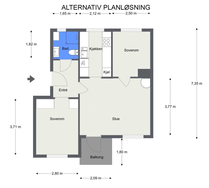 – Siden leiligheten ligger i et bygg fra 1950-tallet er kjøkken og stue adskilt. Derfor er det allerede tilgang på et vindu i det som kan bli det nye rommet, og med tilstrekkelig størrelse, kan det dermed bli et godkjent soverom.