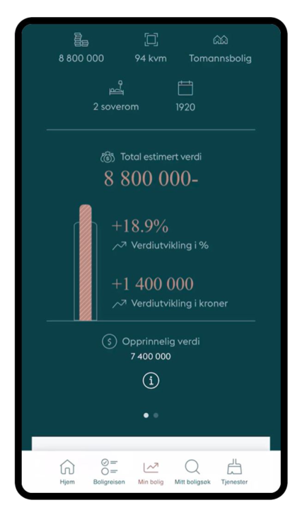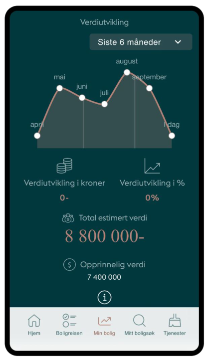 – Når du er logget inn, kan du følge med på hva verdien på eiendommen din er. Du kan med andre ord se hvor mye verdien på boligen din har endret seg siden du kjøpte den. Det betyr at du får bedre kontroll over hvor mye estimert egenkapital du sitter på til enhver tid.