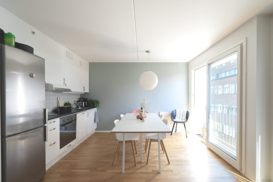 – Kjøpergruppen for denne boligen er mest sannsynlig unge par, som kanskje har solgt hver sin mindre bolig. Det er heis, høy standard, og rene overflater. Man får rett og slett litt hotellopplevelse! Som hovedbilde til Finn.no ville jeg fremhevet den romslige stue- og kjøkkenløsningen, som viser at det er plass til et langbord med mange gjester. Da får man også vist fram de store moderne og flotte vindusflatene fra gulv til tak, sier Beatrice.