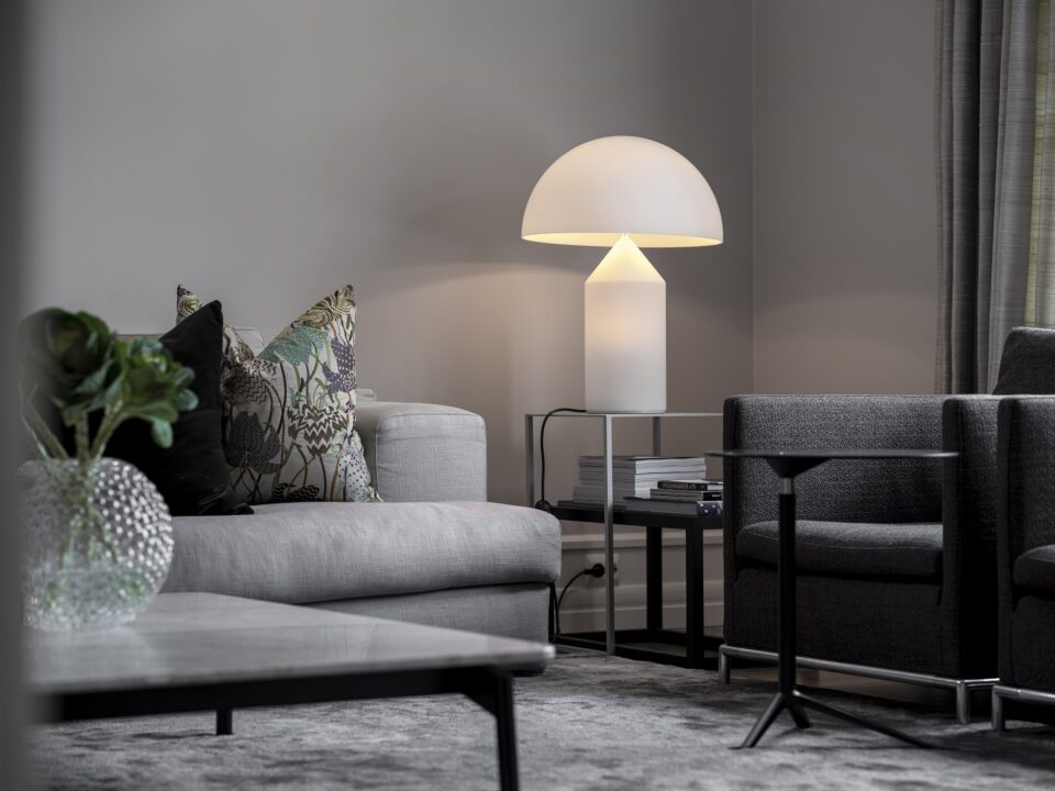 -Med godt designede lamper får man to dekorelementer i ett. Lampene ser vakre ut i dagslys når de ikke er tent, og når mørket faller på og du tenner dem, så faller lyset på en måte som skaper egne rom i rommet. Lamper med gjennomført design gir et lys som tilfører hjemmet ditt egenart og kvalitet sier Helle Berg Olsen i Expo Nova. Hun har valgt ut en rekke lamper hun anbefaler om man ønsker å gi boligen et eksklusivt preg før for eksempel en visning.