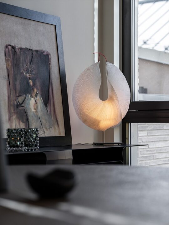 -Disse lampene er spesielle fordi de oppleves som lysende kunstverk, og blir til et objekt som hever interiøret. Måten de er utformet på gjør at de vil både utmerke seg på bilder og samtidig gi et lunt preg i hjemmet ditt.
