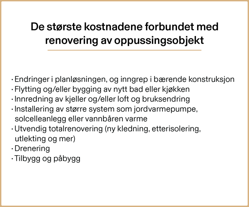 I noen tilfeller når man skal pusse opp et oppussingsobjekt, kan kostnader for utbedring og oppgradering bli høyere enn man hadde sett for seg.