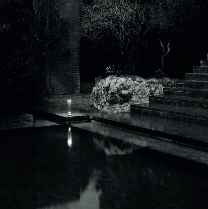 In Vitro pullert leveres i flere høyder og den transparente pullerten gir mykt lys til sine omgivelser uten å blende, takket være at lyset ligger i toppen av lampen – helt usynlig.