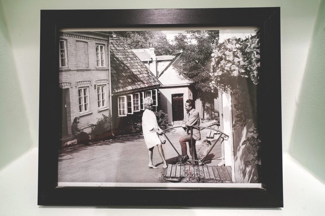Dette bildet fulgte med da de kjøpte huset, fra en filminnspilling fra 50-60-tallet foran Villa Rosa. Paret er enige om at bildet får stå til de neste eierne. Foto: Carsten Müller, Zovenfra AS