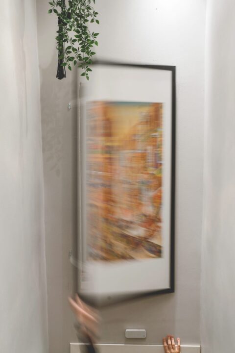 Personlige reiseminner har fått sin plass i rammer på veggene, og alle bildene er tatt av Julian. Som flittig hobbyfotograf på parets mange reiser, har ferieturene til Saharaørkenen, Tokyo, Cuba og Lofoten blitt foreviget. Foto: Carsten Müller, Zovenfra AS