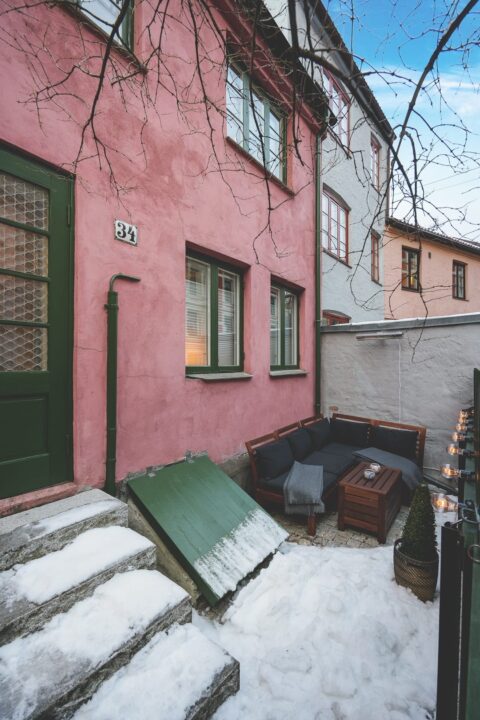 – Plattingen er jeg aller mest fornøyd med, for nå får vi brukt den siden av huset mer enn tidligere. Det hyggeligste med huset er nettopp at det ligger i Damstredet, og på sommeren er det tettpakket med blomster. Det ser ut som et postkort! sier Sine.