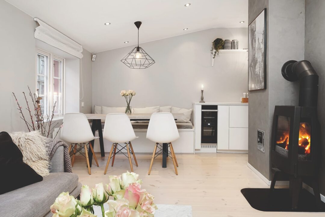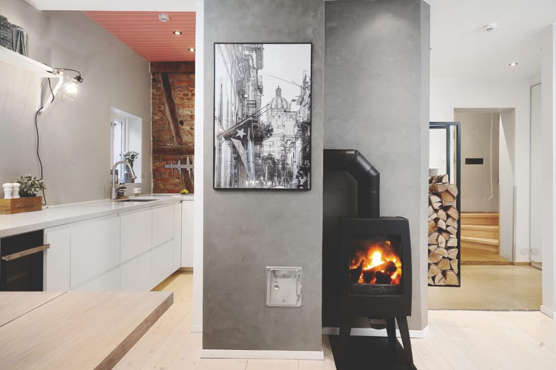 I den forrige leiligheten hadde paret fått inn peisen de ønsket, så peiskosen var det viktig å få inn her også:
